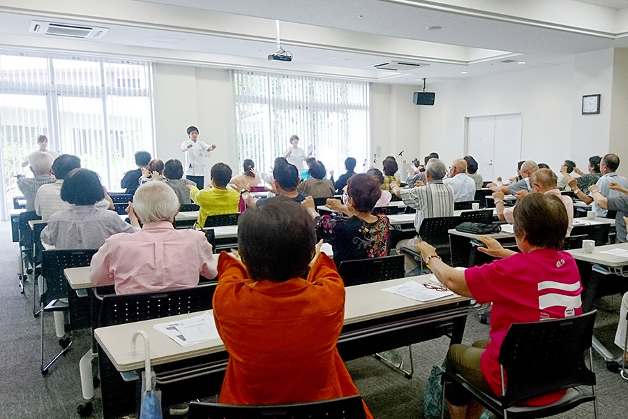 月に一度「生き活き健康教室」を開催し、健康づくりや生活設計に役立つ知識や技術を情報提供すしています。健康教室では、血圧測定やリハビリスタッフによる健康体操も実施しています。