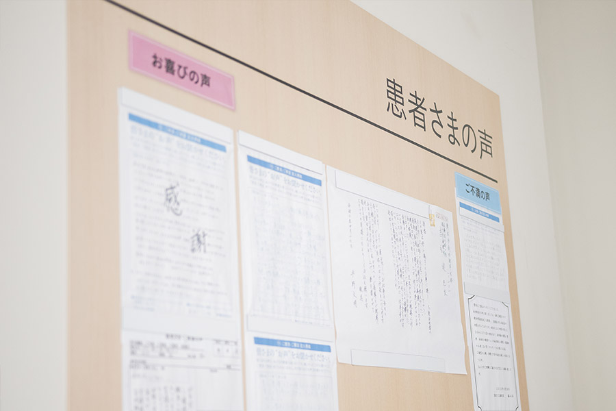 ご意見やご要望を直接理事長まで届ける、理事長直通便ボックスを設置。いただいたお声は患者さま満足室・患者さま満足委員会・各部署で共有し、より良い病院づくりに取り組んでいます。