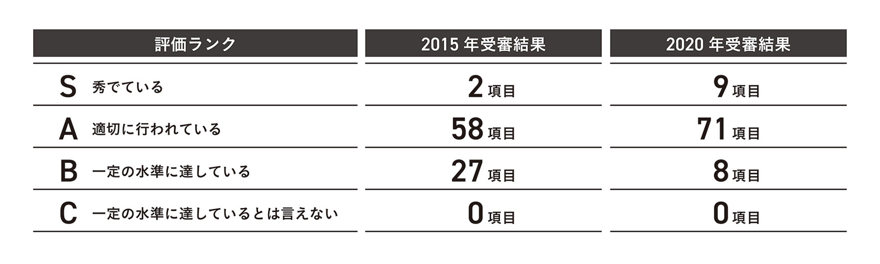 「病院機能評価」とは、病院の医療の質を第三者機関が評価する制度です。評価を行う日本医療機能評価機構は、国民の健康と福祉の向上に貢献することを目的とする公益財団法人として1995年に設立。病院が備えているべき機能について、中立・公平な専門調査者チームによる「病院機能評価」審査を行い、一定の水準を満たした病院を「認定病院」としています。約90項目の病院機能を専門調査者が審査し評価しています。S、A、B、Cの4段階で評価され、S評価は「秀でている」とされています。