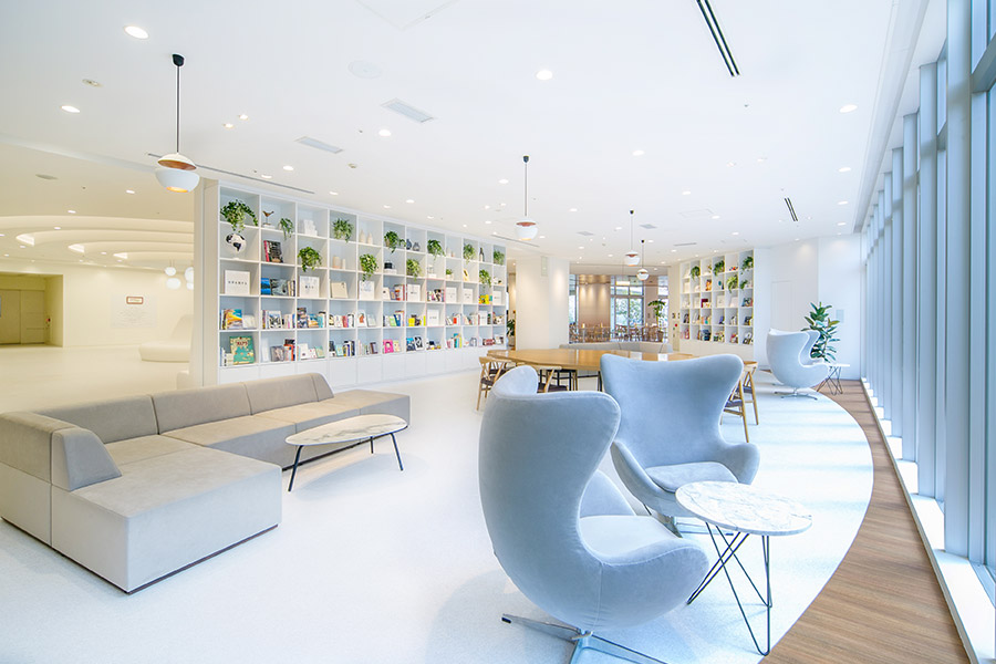 「病院は、大切なものに気づける場所」へ。2019年4月、さくら館1階をフランスの絵本「まってる。」をモチーフとした空間へとリニューアル。患者さまやご家族、ご来院の皆様が心和ませ、新たな気づきを得ていただけるような空間を目指しました。