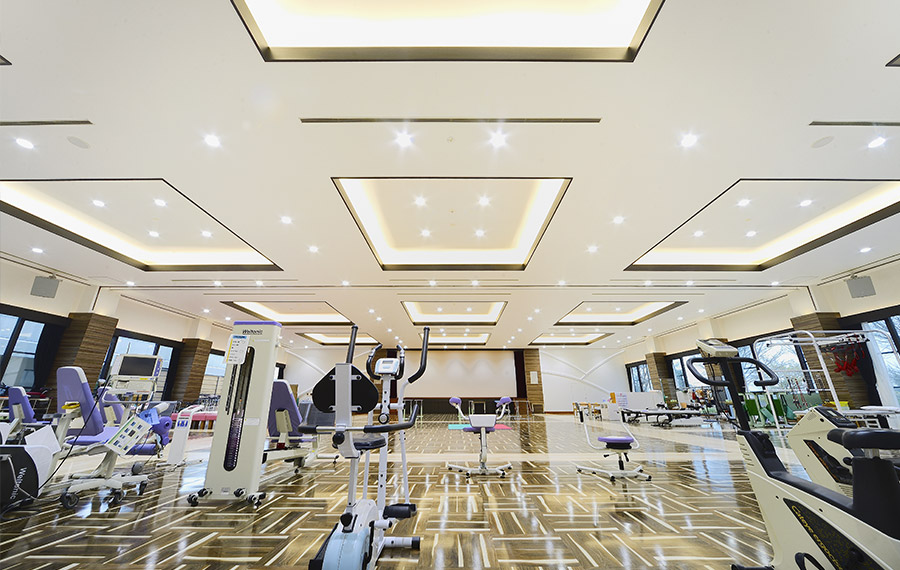 700㎡の広いリハビリテーション室に、最新鋭リハビリ機器を完備。理学療法・作業療法・言語聴覚療法、全ての分野において、効果の高いリハビリに努めています。