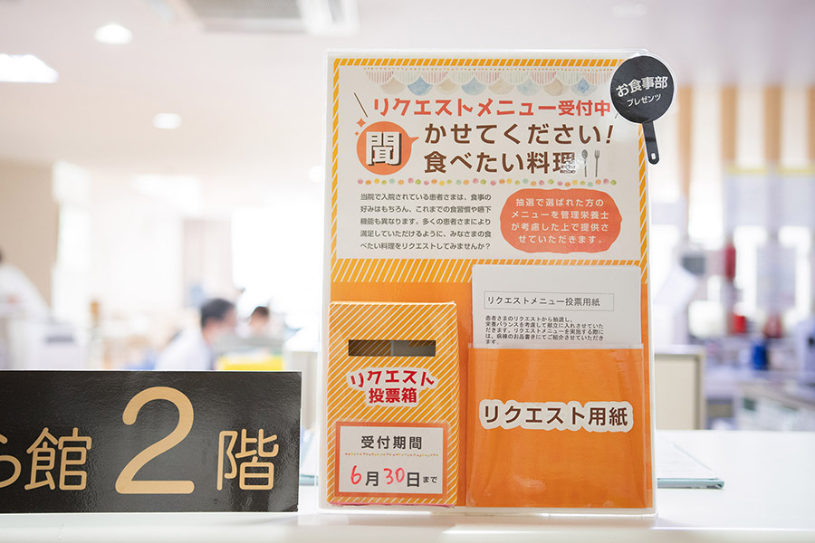 ラジオで音楽をリクエストするように、食べたいものを病院にリクエスト。抽選で選ばれた方のメニューを、管理栄養士が考慮した上で提供します。