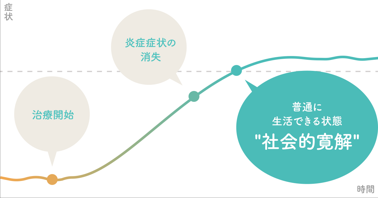 近年、新しい抗リウマチ薬の登場により治療法が劇的に変化しました。単に痛みをとることではなく「寛解」すなわち自・他覚的に炎症症状が消失し普通に生活できる状態が目標となり、最終的には社会的寛解という日常生活の維持がゴールになります。
