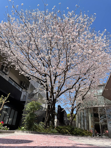 今年もレ・ハビリス桜十字熊本東では、桜が満開です。今日は、青空に映えて、一層綺麗です。