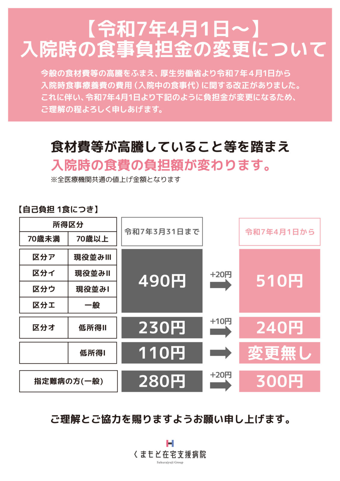 【令和7年4月1日~】入院時の食事負担金の変更について