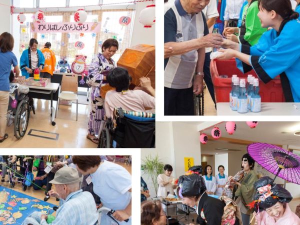 2016/07/23 イベント関連 夏祭り ご家族と一緒に楽しめる季節のイベント “ 桜十字 夏祭り ” を開催しました。 ご家族はもちろん、浴衣姿の職員と一緒にヨーヨーや魚釣り、射的やガラポンを楽しまれ、 かき氷、ラムネでひと時の涼を感じる姿が見られ、昔ながらの縁日会場はたくさんの人で賑わいました。 前の記事へ 次の記事へ