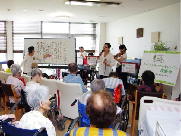 2016/08/29 イベント関連 リーフアンサンブルキャラバン 音楽会 緩和ケア病棟にて、リーフアンサンブルキャラバン の方々による音楽会を開催しました。 ピアノ、フルート、バイオリン、オカリナの伴奏で季節の歌や懐かしい曲が次々と演奏され、 後半では生演奏でのイントロクイズを楽しみ、最後は皆さんで「ケ・セラ」を合唱。 柔らかい音楽の音に皆さん耳を傾けられ、歌うことの楽しさを味わうひと時となりました。 リーフアンサンブルキャラバン 音楽会 ~楽しい音楽のひと時を皆さんと共に~ 前の記事へ 次の記事へ
