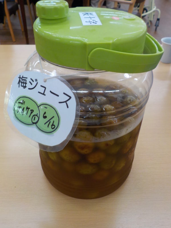 2017/07/21 イベント関連 手作り梅ジュース 試飲会 毎年恒例の梅ジュース作り。 6月初旬に梅のヘタを取り、たっぷりの蜂蜜に梅を丸ごと漬けること早1ヶ月・・・待ちに待った梅ジュースが完成しました! 出来上がった梅ジュースは水やサイダーで割り、皆さまに試飲頂きました。 皆さま、甘くて美味しいととても喜ばれ、「焼酎持って来なんかったな~」などの冗談も飛び交い、楽しいひと時となりました。 また来年も梅ジュースを美味しそうに飲む皆さまの笑顔を楽しみに、暑さに負けず頑張りたいと思います。 前の記事へ 次の記事へ