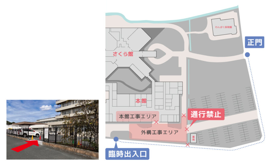 2023/09/26 病院からのお知らせ お見送り出入口のご案内 誠に勝手ながら、本館の改修工事の期間中は入口を変更させて頂いております。お見送りの際の出入口は臨時出入口となっております。地図に従い出入口にお回りください。 工事期間:9月16日(土) -12月17日(日) 大変ご迷惑をお掛けしますが、何卒ご理解、ご協力の程よろしくお願い申し上げます。 前の記事へ 次の記事へ
