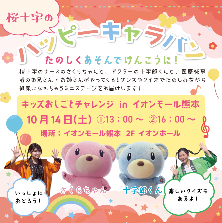 当日は、みんなに笑顔と健康をお届けしている桜十字の『ハッピーキャラバン隊』によるミニステージも開催します!