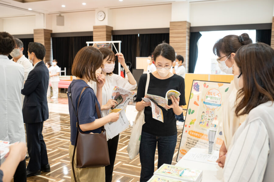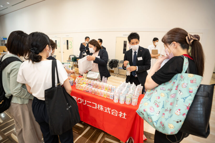 講演開始前、終了後には森永乳業クリニコ株式会社による栄養補助食品等の試供品配布や若林先生の著書販売を実施いたしました。講演の中でもお話があった、特に講演終了後は興味を持っている方々が多くいらっしゃいました。