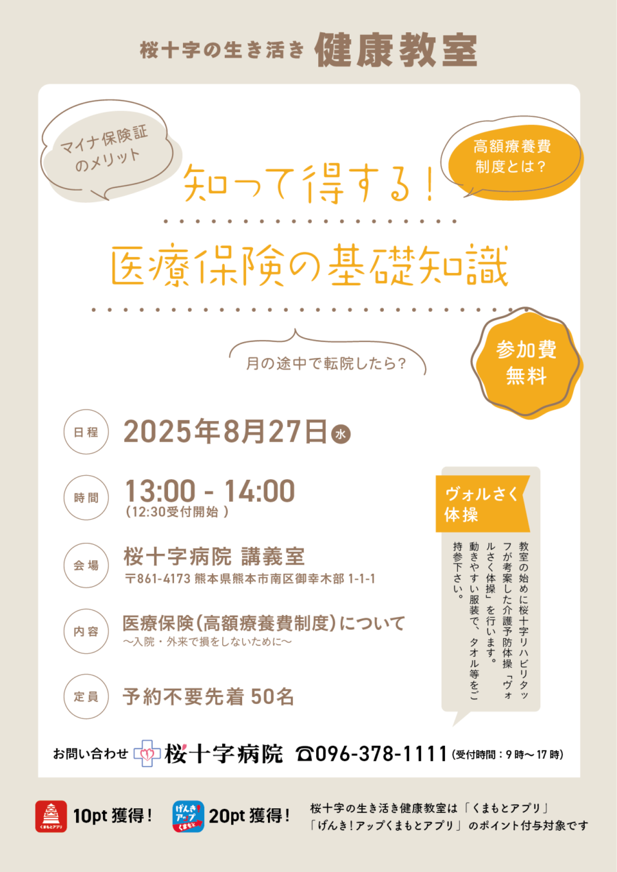 ※桜十字の生き活き健康教室は「くまもとアプリ」並びに「げんき!アップくまもとアプリ」のポイント付与対象講座となっています。