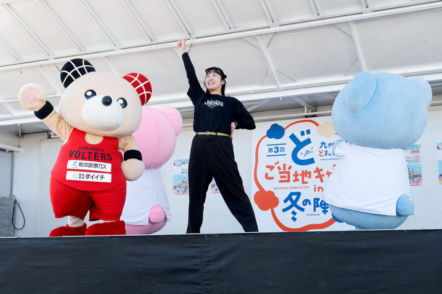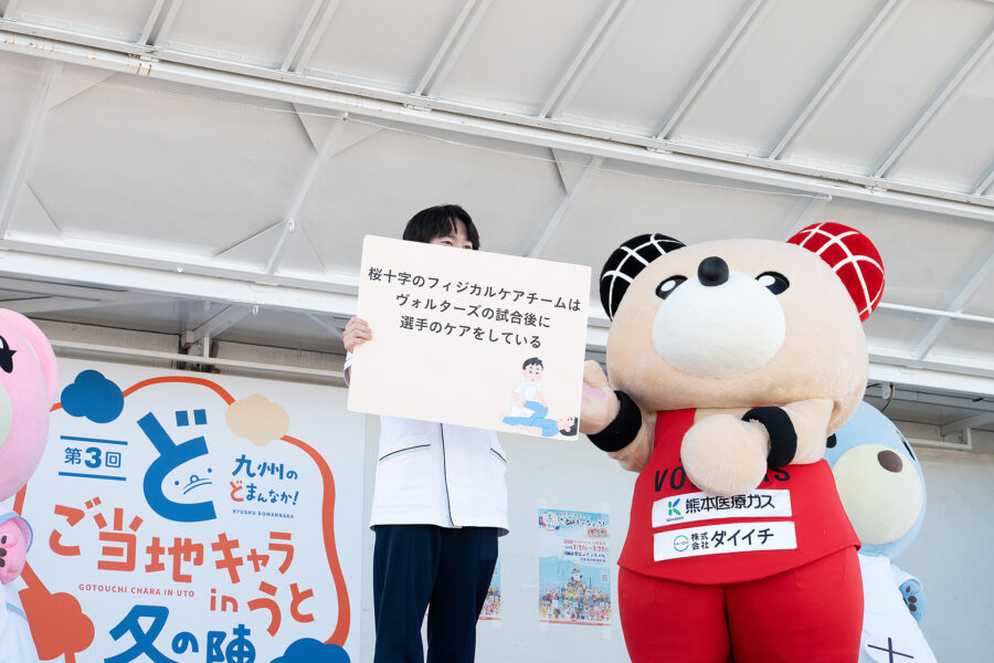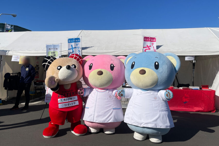 今回は熊本ヴォルターズの公式キャラクター・ぼるたんも駆けつけ、さくらちゃん・十字郎くんとともに会場を盛り上げてくれました。