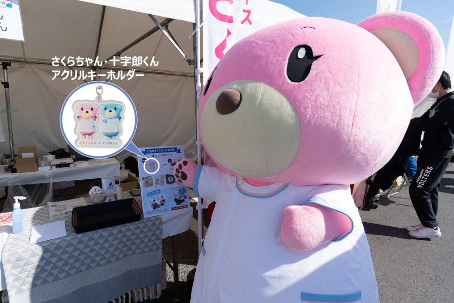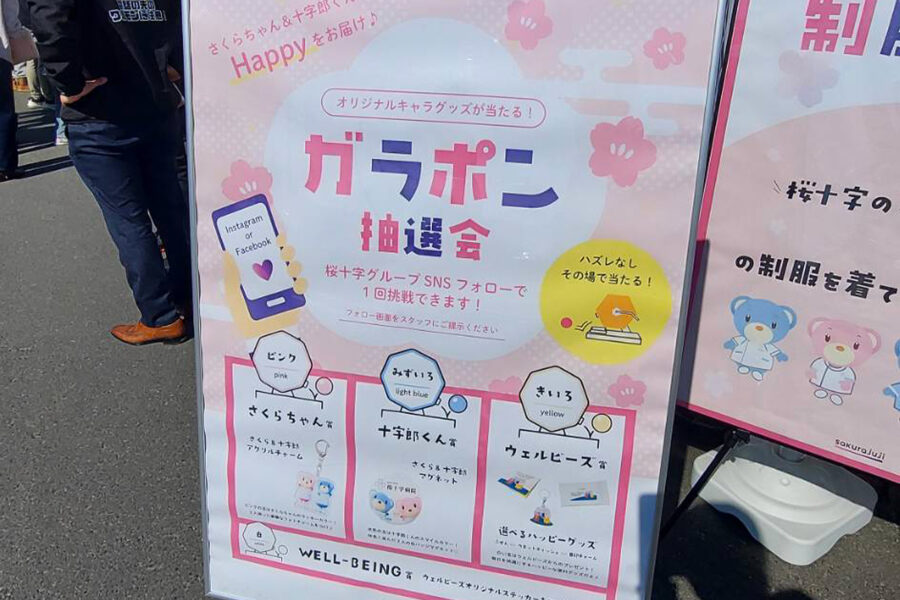 桜十字病院のブースでは、桜十字グループ「WELL-BEING FRONTIER」のキービジュアル『WELL-BEEES(ウェルビーズ)』をモチーフにしたグッズや、さくらちゃん・十字郎くんのマグネット、アクリルキーホルダーなどが当たるガラポン抽選会を実施しました。
