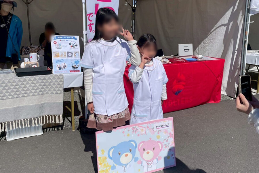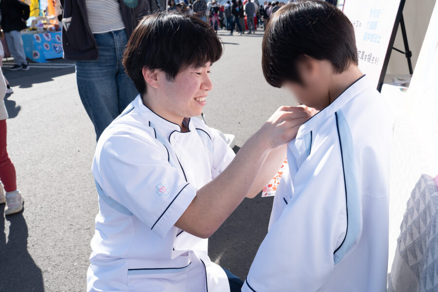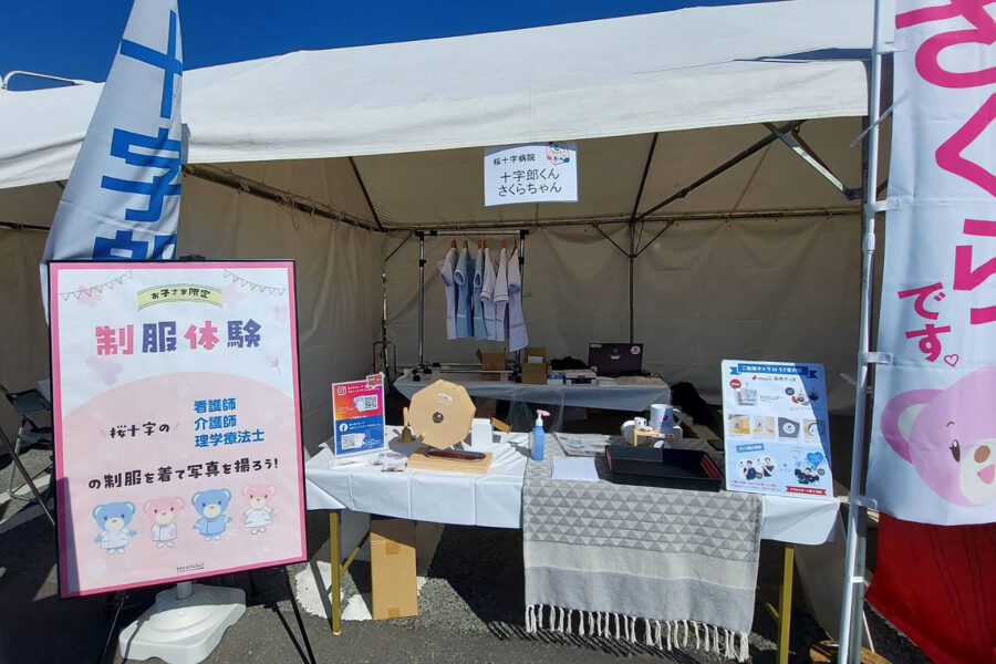 桜十字病院の看護師やセラピスト、ケアワーカーなどの制服体験も実施し、ご家族連れの方にも多くお立ち寄りいただきました。