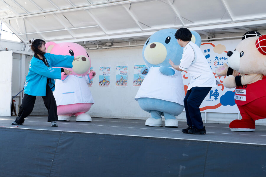 その後は持ち回りで各キャラクターによるPRタイム。ステージ外でも来場者の皆さんとキャラクターたちがふれあう姿があちこちに見られました。