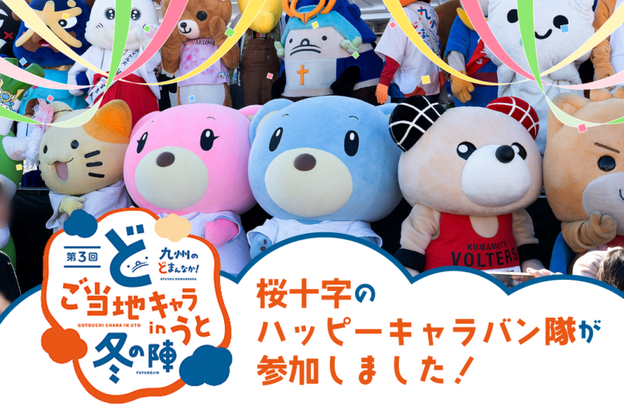 2026年2月21日(土)、宇土シティーモール(熊本県宇土市)にて開催された「第3回 九州のどまんなか!ご当地キャラ in うと 冬の陣」に、桜十字のハッピーキャラバン隊が参加しました!