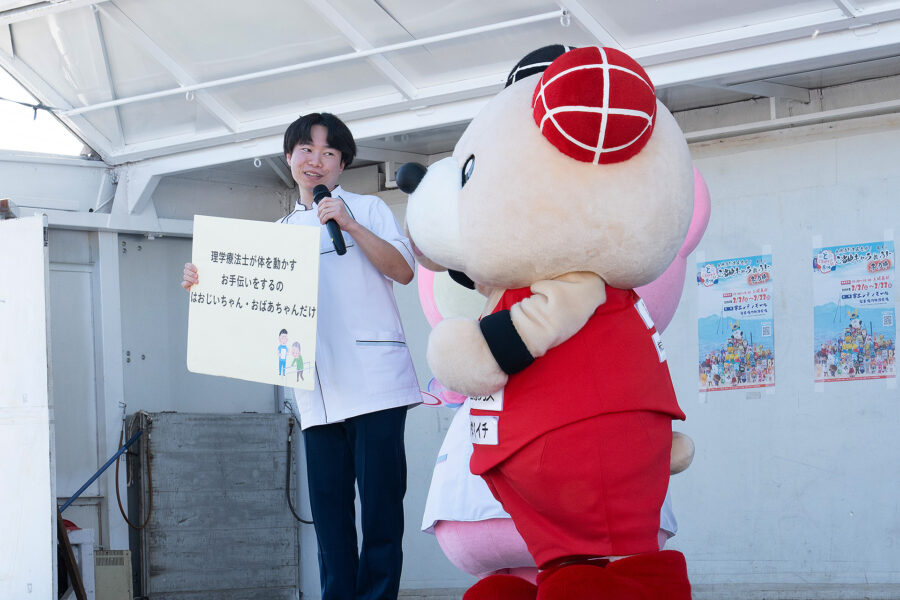 クイズの解説では、理学療法士とぼるたんの軽やかな掛け合いもあり、会場には笑顔が広がりました。