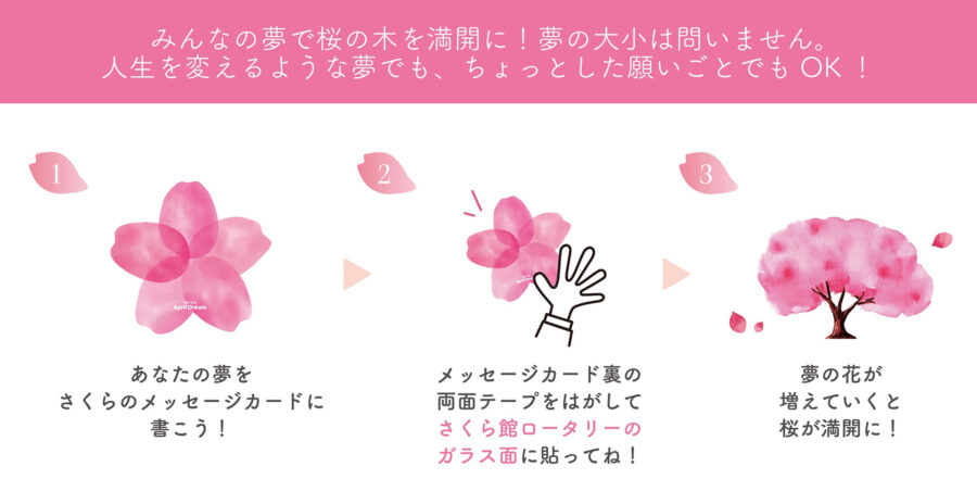みなさんの夢を載せた桜の花が満開になる日がとても楽しみです。たくさんのご参加、お待ちしております。