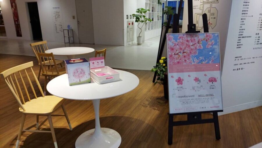 桜のメッセージカードに「あなたのウェルビーイングな夢」を書き、指定の掲示場所に飾っていただきます。夢の数が増えるたびに、桜の木が少しずつ満開へと近づいていきます。