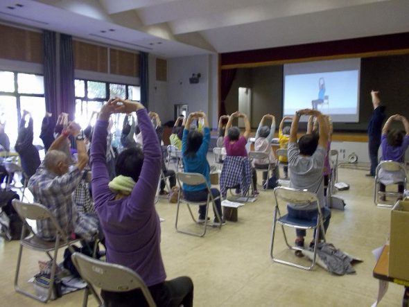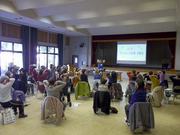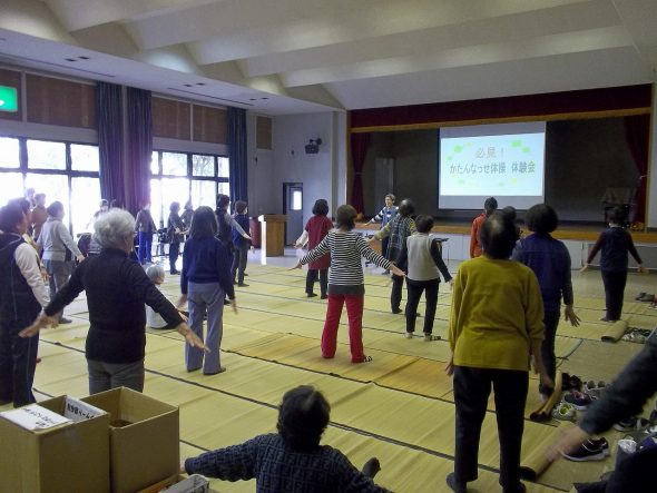 熊本市が推奨している『かたんなっせ体操』は、バランス能力や筋力向上、ストレッチなどを取り入れた運動を、DVDを見ながら行う体操です。朝日野総合病院 理学療法士の森様にご支援いただき、1月31日に秋津公民館で体験会を行いました。また、秋津校区の介護予防サポーター村上様より、普段公民館でされている体操の紹介をして頂きました。参加者の方からは『取り組みやすい内容でわかりやすかった』『手軽にできそう』など好評でした。また次回は4月に開催を予定しています。沢山のご参加お待ちしています。