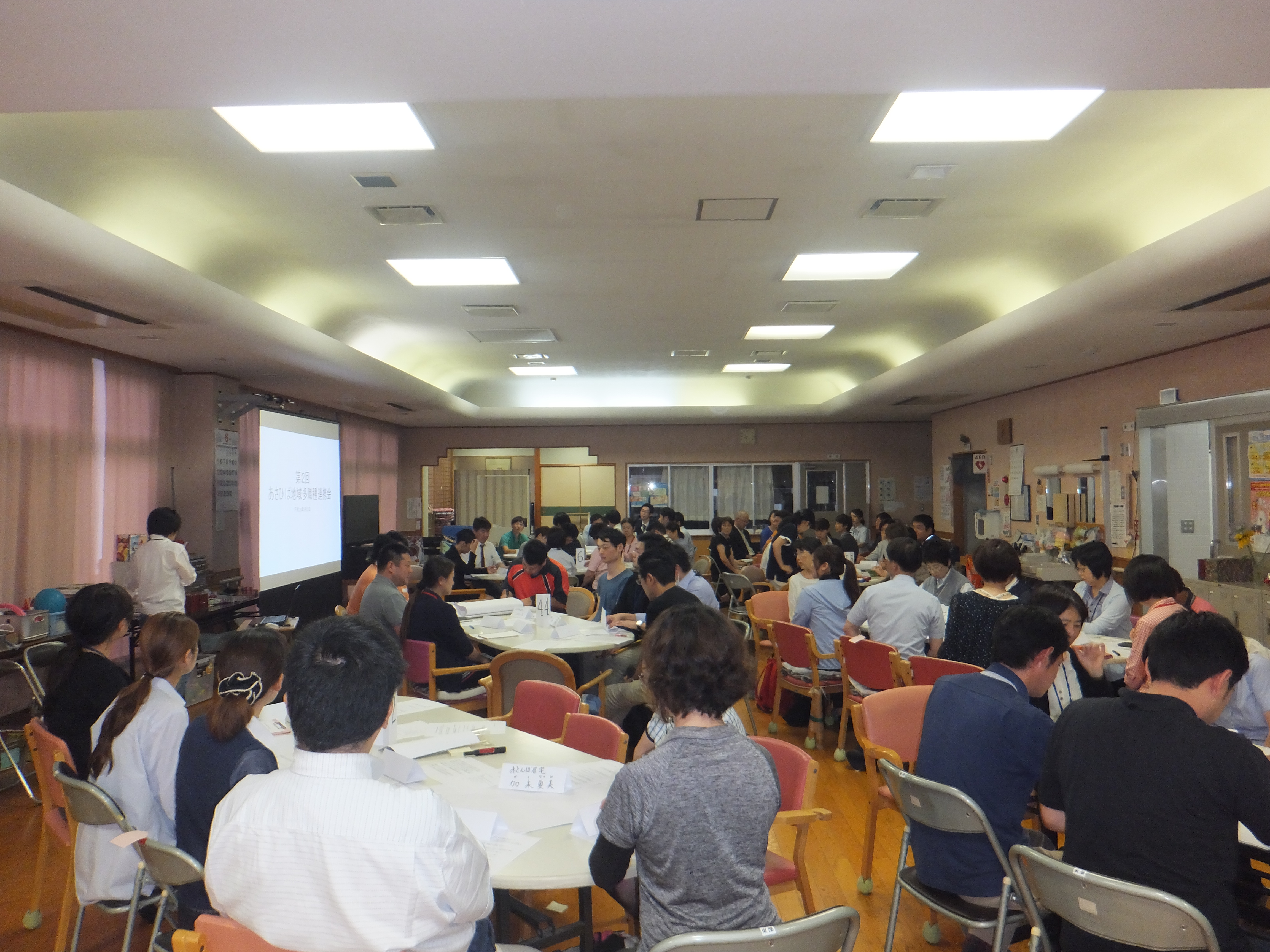 あさひば校区周辺の事業所が中心に80名の医療・介護従事者が集まり、熊本地震発生時の対応や未来に続く問題課題等についての意見交換を開催しました。