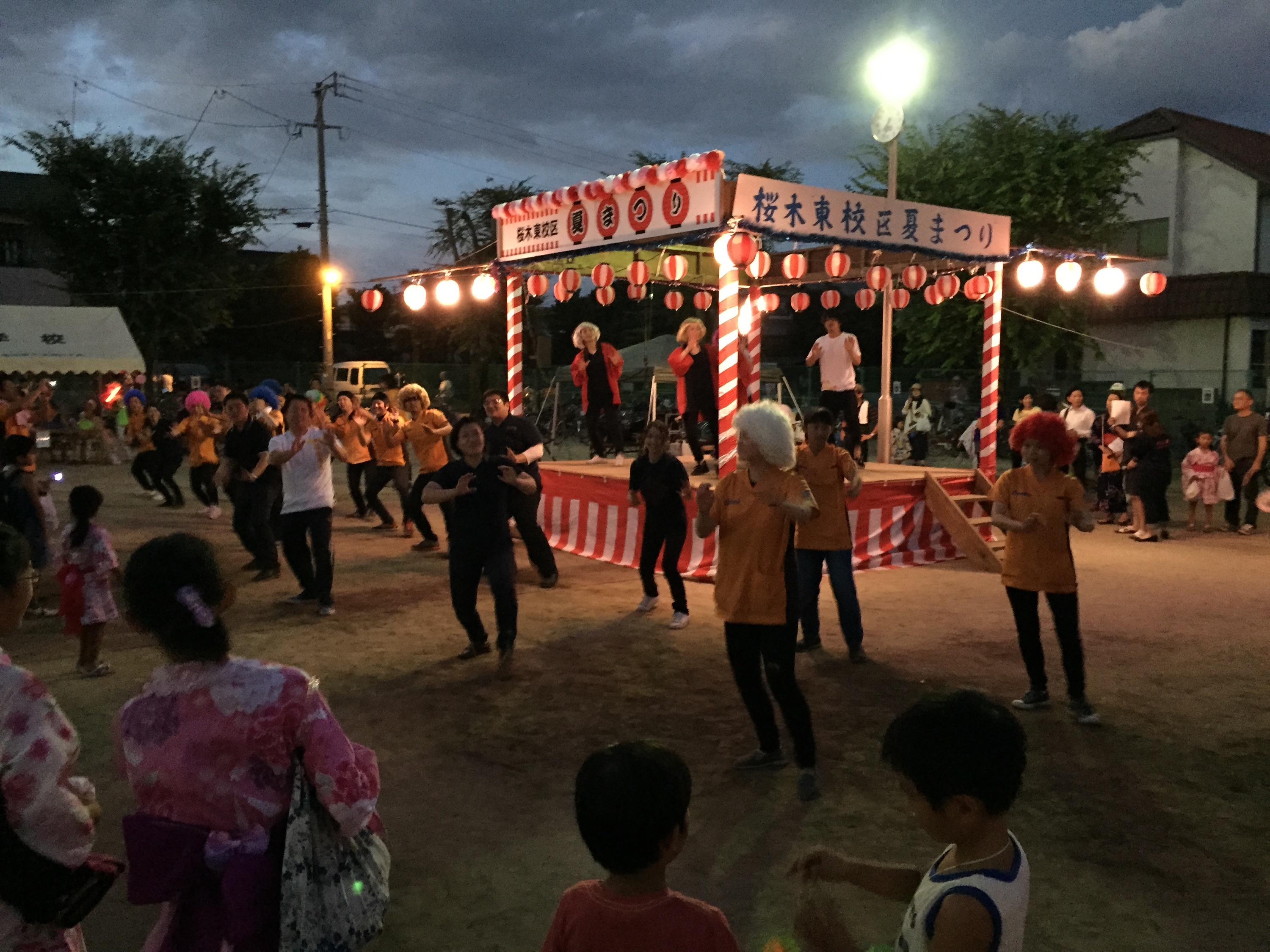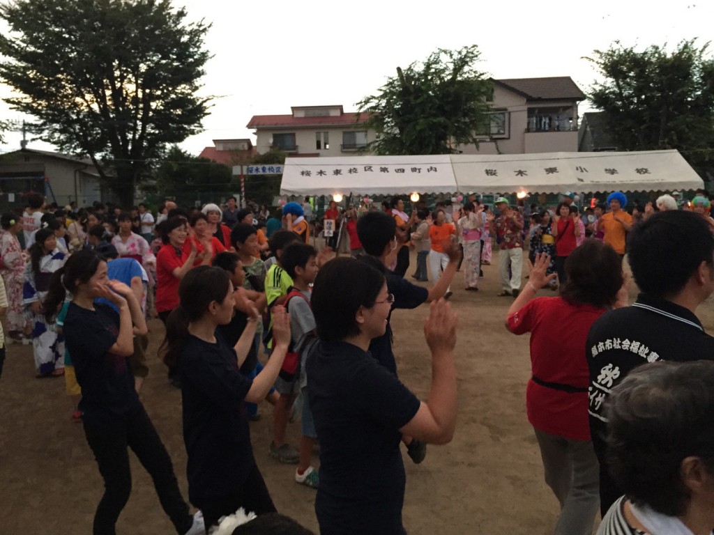 子どもたちの踊りあり、みんなでの盆踊りあり、出店も大賑わいで