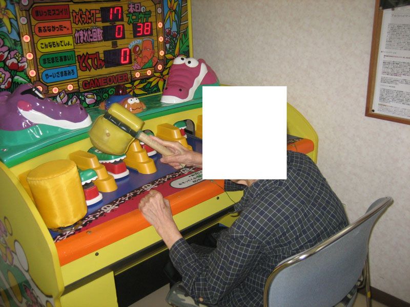 当事業所は、理学療法士による障害像の分析をもとに、「リハビリテーションの観点」で、理学療法士と看護師・介護福祉士が連携し、高齢者または若年者に「個別機能訓練」と「認知症予防ケア(アクティビティ含む)」を軸にしたサービスを提供することで、その生活機能を高めることにあります。個別機能訓練では、それぞれの課題を明確にしてフィードバックし、自らの生活における適応力を高めるための自主訓練に繋げます。また、認知症予防ケアでは、ゲーム機を使用するものや図形を組み合わせるものなど、多彩な対応を工夫しています。