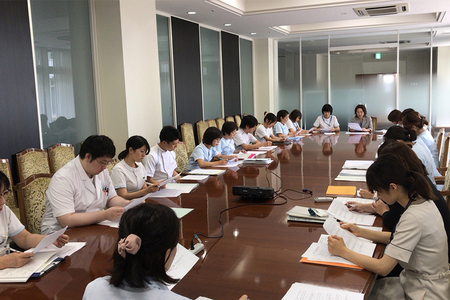 月に一度、患者さま満足委員会にて事例検討等を行っています。患者さまやご家族からの声を、医療現場の専門職から事務職まで多職種で持ち寄り、患者さま満足の向上に反映させています。