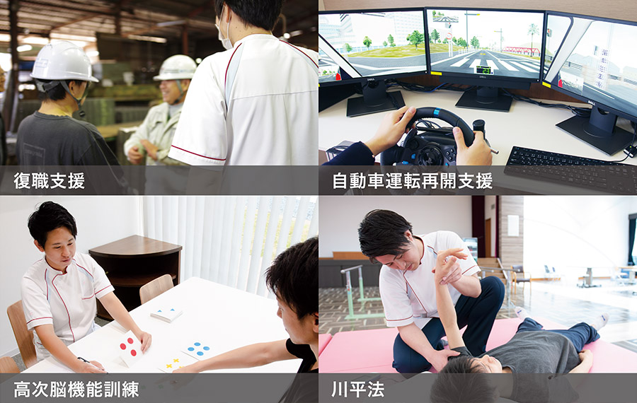 社会復帰サポートプログラムとして、自動車運転再開支援や復職支援を実施。脳血管疾患の患者さまが不安やストレスなく在宅復帰・社会復帰ができるようサポートしています。