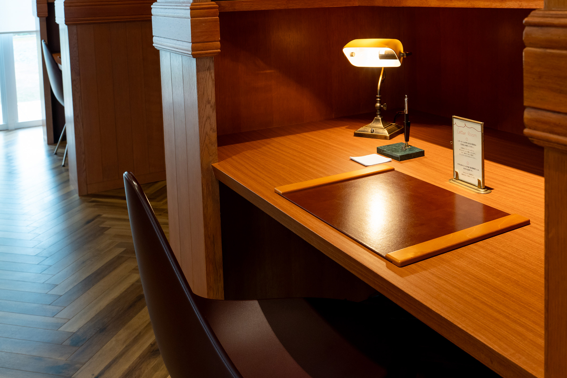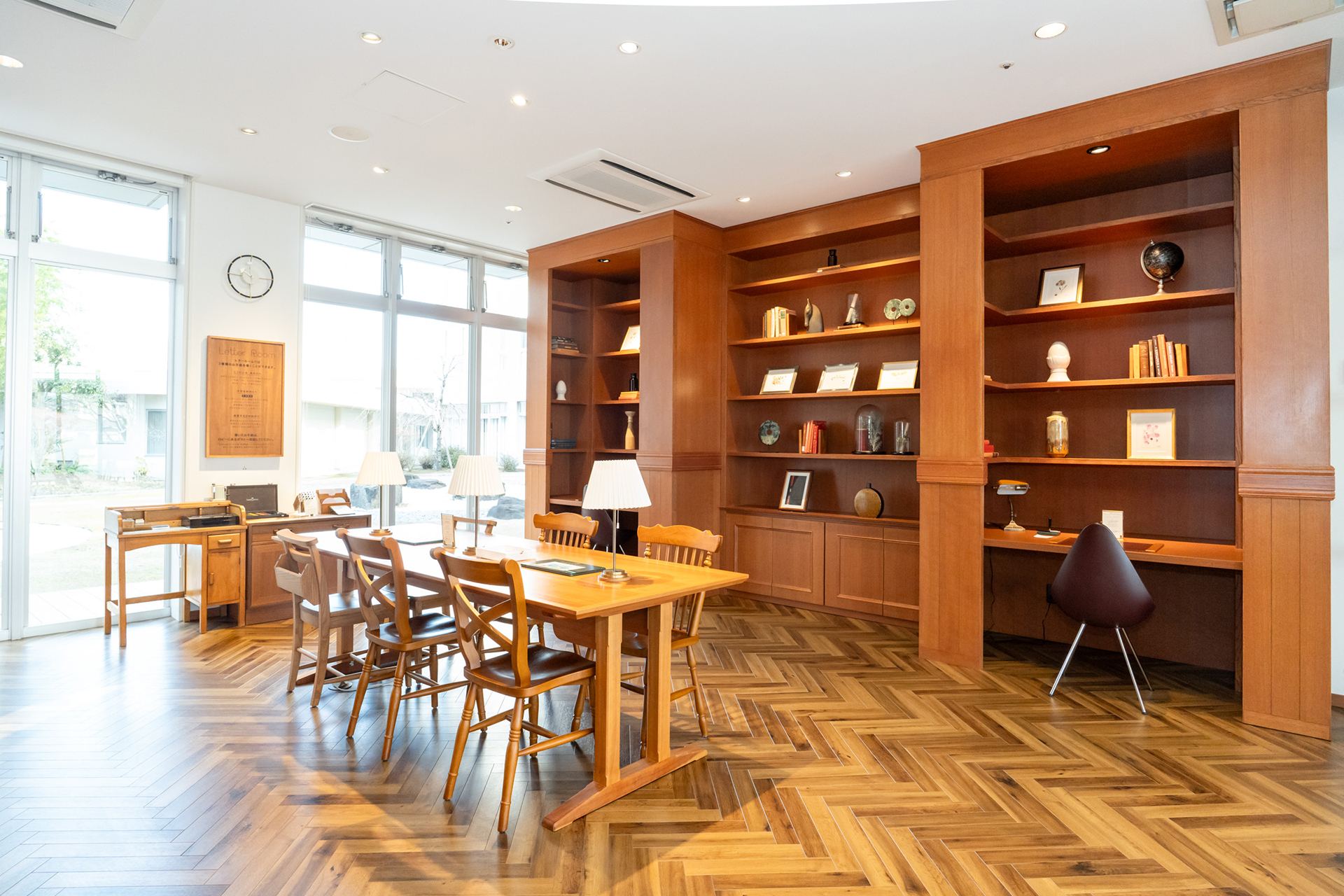 大切な人に、未来の自分に、ゆっくりと落ち着いて手紙を書くためのお部屋です。その思いを文字にしてみませんか?親子で使える広いテーブルに心を落ち着けて自分と向き合えるデスク、座り心地の柔らかいレザーや木製のチェアを備え、心地よく落ち着ける空間になりました。万年筆や色鉛筆、インクペン、お手紙を飾るスタンプなど、手紙を書くのが楽しくなる文房具もぜひお試しください。