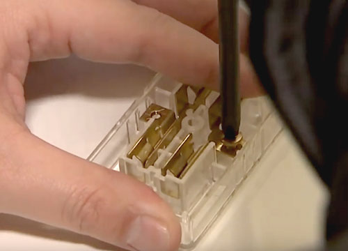 製造業では電子部品などを組み立てる作業もあり、より実際の作業に役に立つ訓練が「プラグ・タップ組立」です。ミスの間違いなどにはアドバイスをして、患者さまの訓練を支えます。プラグ・タップ組立には5つのレベルがあり、作業時間はおよそ50分です。
